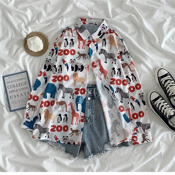 ワイシャツ レディース 送料無料 長袖トップス シャツ ブスリット 動物 イラスト アニマルプリント ベーシックワイシャツ コットン オーバーサイズ ラウンドスリーブシャツ 白シャツトップス ロング 長袖 ボリューム袖 ドルマンスリーブ ドロップショルダー Vネック 襟付き オーバーサイズ ビッグシルエット バックスリット バックシャン バックコンシャス 大人可愛い きれいめ 上品 レトロ 大人女子 こなれ感 ラフ 白 ホワイト ストライプ 重ね着 楽ちん 体型カバー 高見え 定番