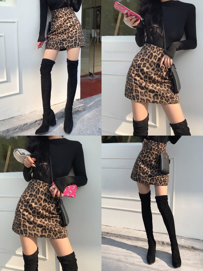 ウールタッチのレオパードプリントが大人可愛いミニスカート
