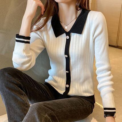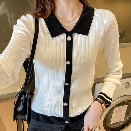 トップス レディース 送料無料 長袖ショート丈 カーディガン風 バイカラー モノトーン カラバリ ブラック ホワイト フリーサイズ ワンサイズ リブデザイン襟付き へそ出し ファスナーカーディガン 無地カーディガン ファスナーカーディガン リブ 襟付き カラフル ニットカーディガン ボタンカーディガン スタイリッシュカーディガン クロップド丈 ショート丈 カジュアル シンプル デイリー 日常 フロント ジッパー 通勤 通学 学生 休日 デート ランチ ディナー 韓国 韓国ファッション オルチャン