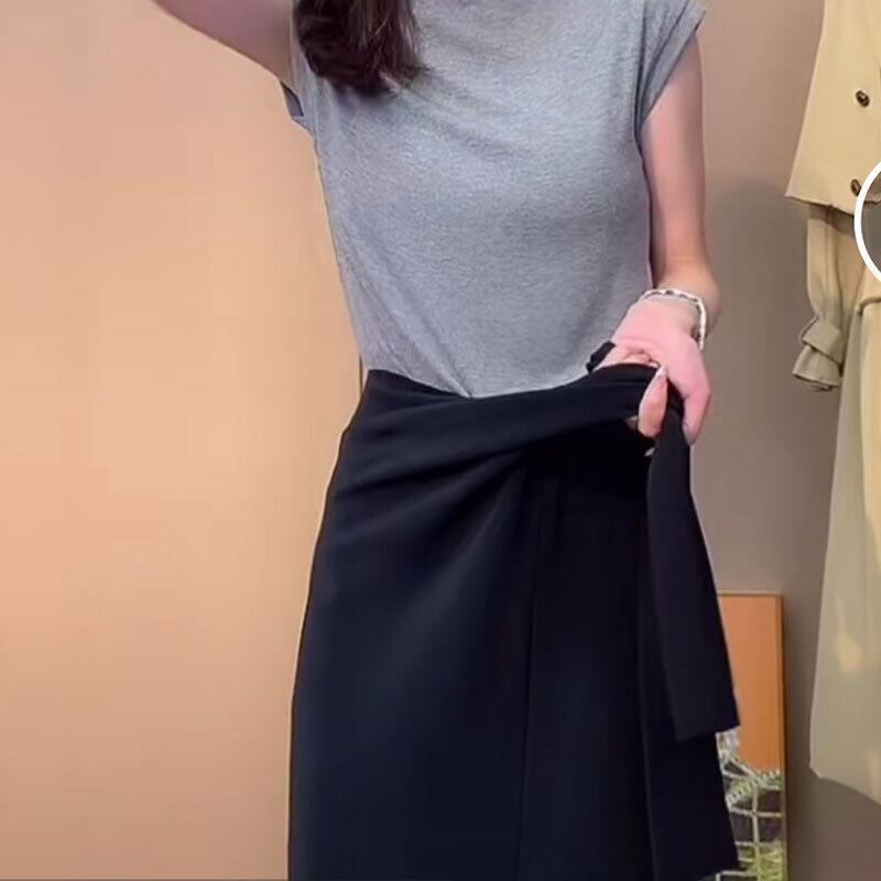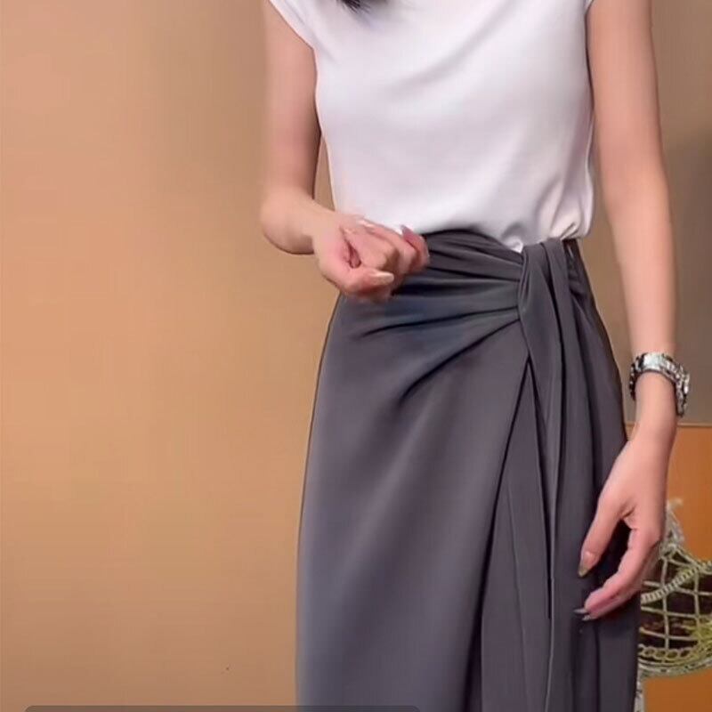 ラップスタイルのアシンメトリーデザインが特徴的なスカート