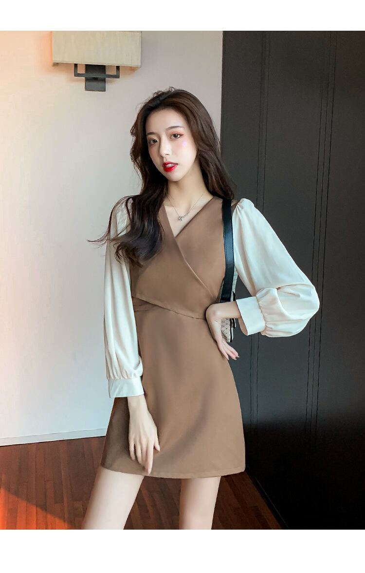 シフォンシャツにレイヤードしたようなVネックワンピースです。