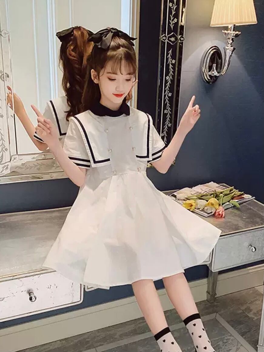 子供服 110〜150 半袖 フレアワンピース バイカラー ミディ丈 ドレス 送料無料 ワンピース ミモレ丈 ライン フロントボタン 子供 キッズコーデ キッズファッション キッズドレス キッズ 可愛い きれいめ エレガント 春 夏 秋 ガーリー お出かけ 外出 きれいめカジュアル 着回し ファッション デート コーディネート 重ね着 休日 特別な日 お祝い 記念日 演奏会 カジュアル 普段着 春コーデ 夏コーデ おしゃれ シンプル ゆったり 韓国ファッション コーデ パーティー パーティドレス 誕生日