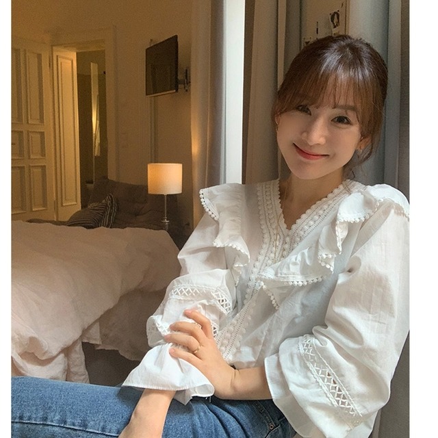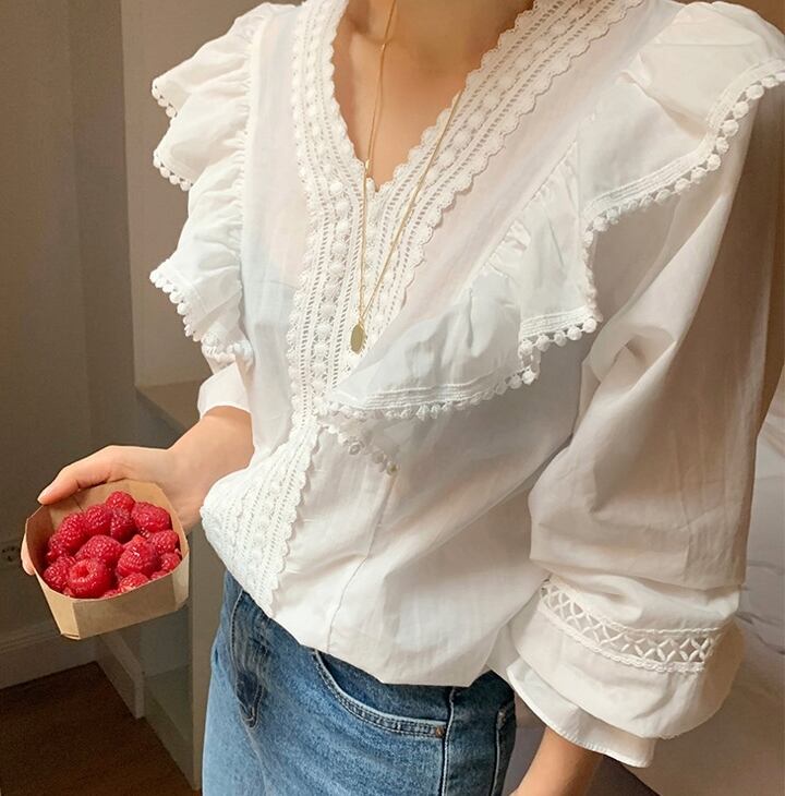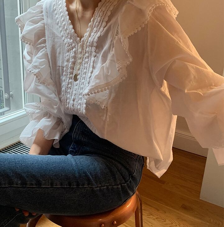 トップス レディース 送料無料 シャツ ブラウス フリル襟 チュニック ビッグシルエット パンチングレース オーバーサイズ シャーリング 襟コンシャス ビッグカラ— レース 無地 フリル ゆったり ゆる 大きめ 楽ちん パフスリーブ バルーンスリーブ バブルスリーブ 長袖 シンプル 大人可愛い 大人女子 上品 エレガント かわいい ふんわり 透け感 抜け感 こなれ感 お洒落 カジュアル ラフ おしゃれ きれいめ 涼し 10代 20代 30代 通学 学生 春服 夏服 普段使い 着回し デート おでかけ モテ