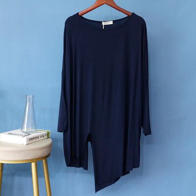 アシンメトリー裾のオーバーサイズのTシャツ。