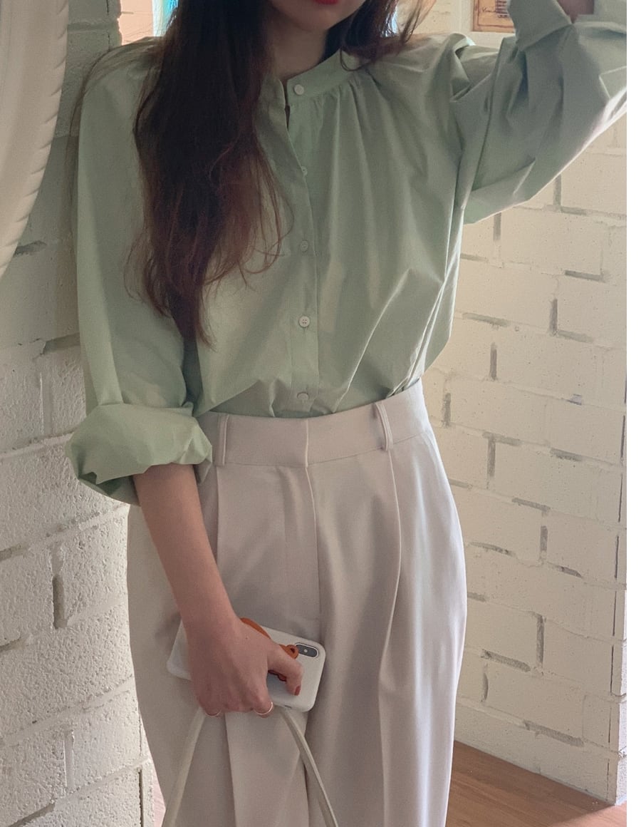 トップス レディース 送料無料 2色 シャツ ブラウス 長袖 襟付き スタンドカラー スタンドカラー 無地 レース パフスリーブ ゆったり ゆる 透け感 抜け感 こなれ感 シック クール カッコイイ かっこいい 個性的 華やか 派手 無地 春 春服 春物 秋 秋服 秋物 10代 20代 普段使い 重ね着 着回し おしゃれ お洒落 ラフ カジュアル 前開き シルバー 銀 ブラック 黒 グレー 灰色 涼し 通気性 薄手 ポリエステル シフォン シフォンシャツ ワイド 存在感 モード系 エキゾチック デート