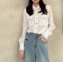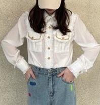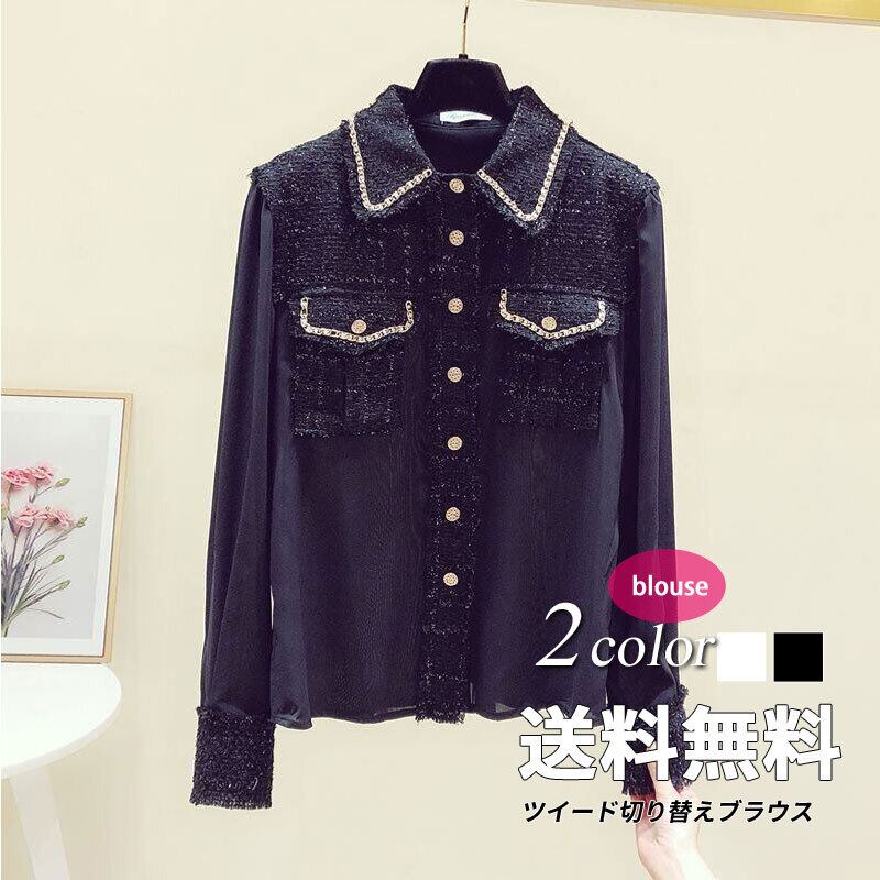 トップス レディース 送料無料 2色 シャツ ブラウス 長袖 襟付き ジャガード ツイード レイヤード フリンジ ジャガード レースカラー 切り替え パフスリーブ ゆったり 抜け感 こなれ感 シック かっこいい 個性的 華やか 派手 無地 春 春服 春物 秋 秋服 秋物 10代 20代 普段使い 重ね着 着回し おしゃれ お洒落 ラフ カジュアル 前開き シルバー 銀 ブラック 黒 グレー 灰色 涼し 通気性 薄手 ポリエステル シフォン シフォンシャツ ワイド 存在感 モード系 エキゾチック デート