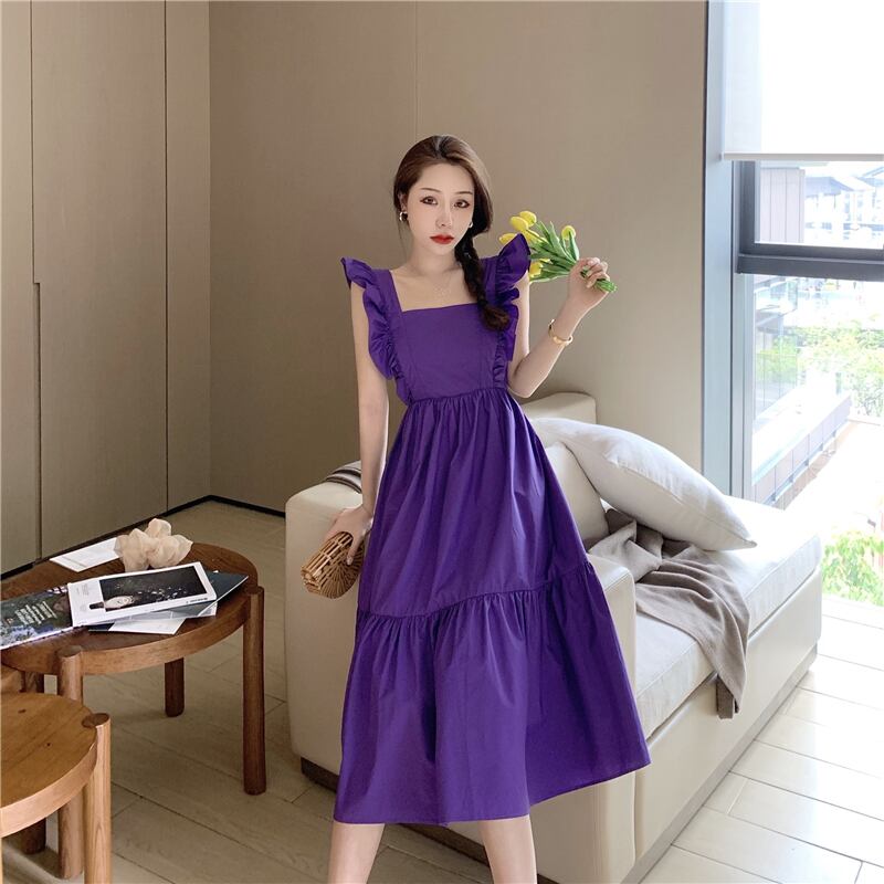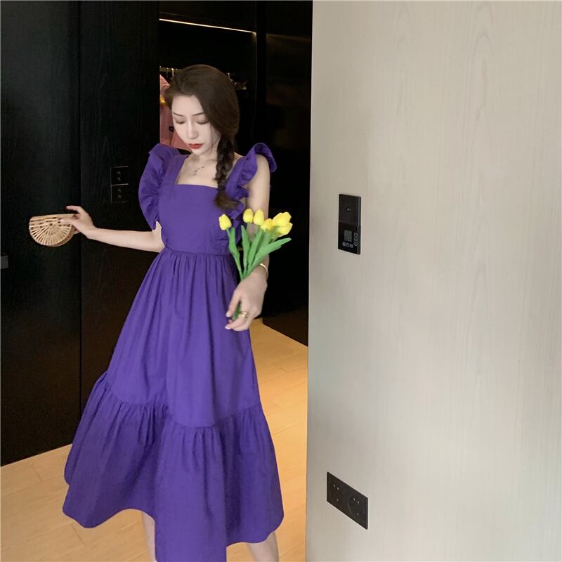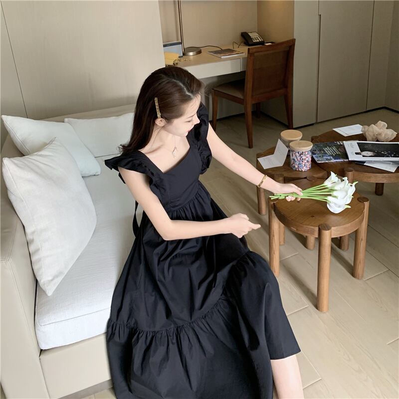 ワンピース レディース 送料無料 2色 ティアードワンピース ロング スクエアネック フリル フェミニン ギャザー シャーリング バックコンシャス おしゃれ スタイル 小顔見せ 着痩せ 体形カバー インスタ トレンド かわいい 女子会 カジュアルドレス キュート ガーリー デート ロマンチック ガーリッシュ ネイビー エレガント ハイウエスト お出かけ 旅行 カジュアルドレス レトロ リゾート ティアード リボン ボタン 紺色 ミニスカート フィット S M L モテコーデ デコルテ 半袖