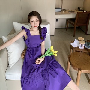 スクエアネックとフレア袖でエプロンのようなキュートな仕立てです。