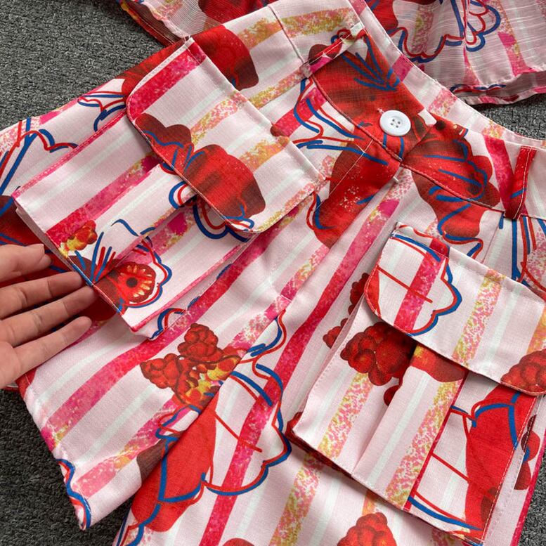 ショートパンツセット レディース 送料無料 上下セット ツーピース ストライプ×フラワーシアーシャツ+ショートパンツセットアップ ボヘミアンボリューム袖シフォンブラウス&ポケット付きショーパン2点 オールインワン ショート丈 長袖 バルーンスリーブ スリム シフォン ハイウエスト 大人可愛い きれいめ 上品 レトロ エスニック キュート ガーリー エレガント 抜け感 ニュアンスカラー 花柄 二の腕カバー 美脚 脚長 インスタ映え 春夏 秋冬 おしゃれ デイリー お出かけ デート パーティー 二次会