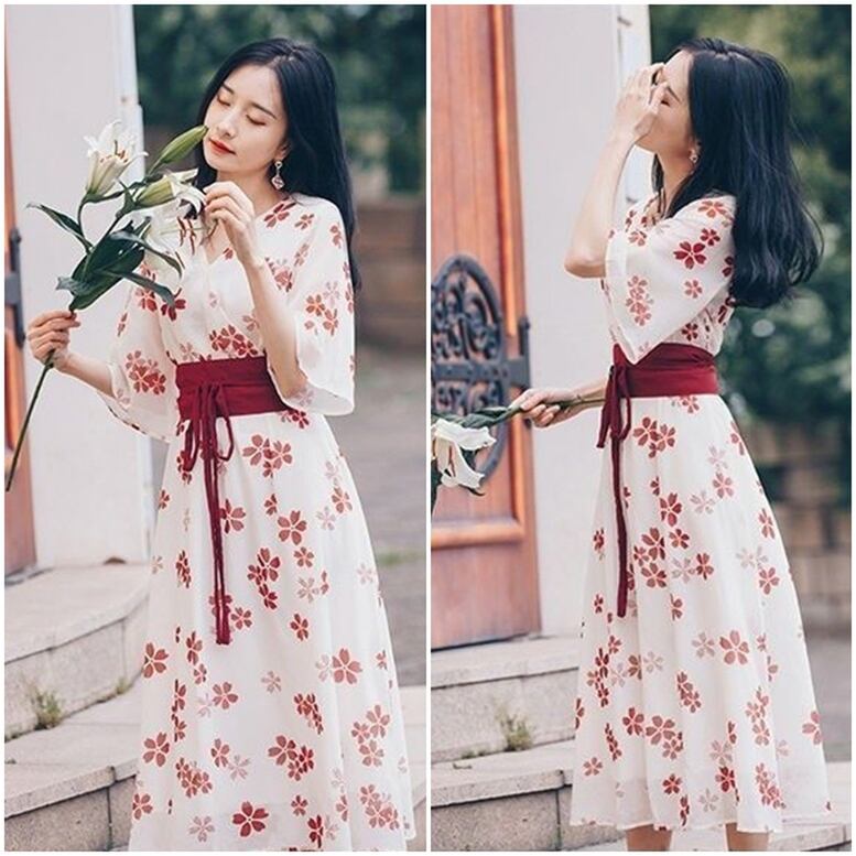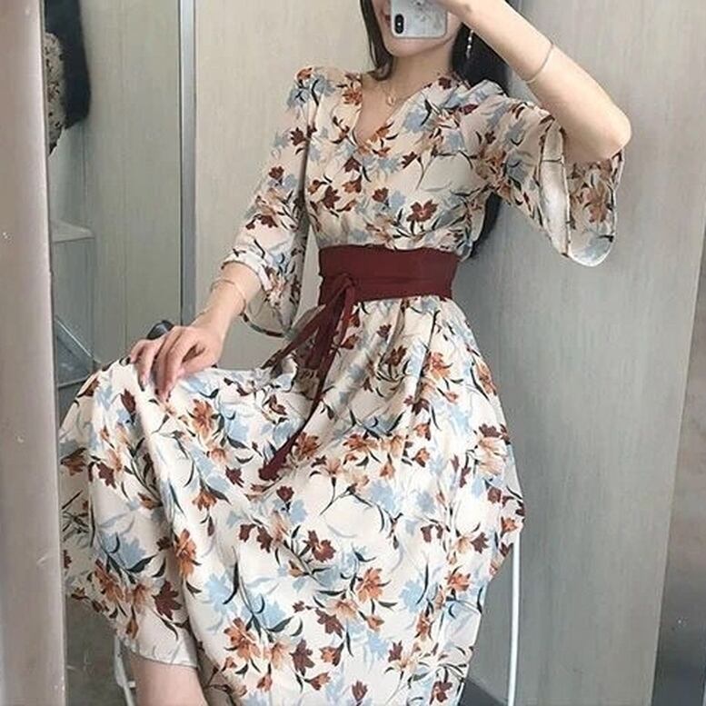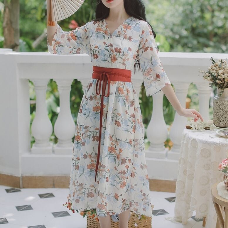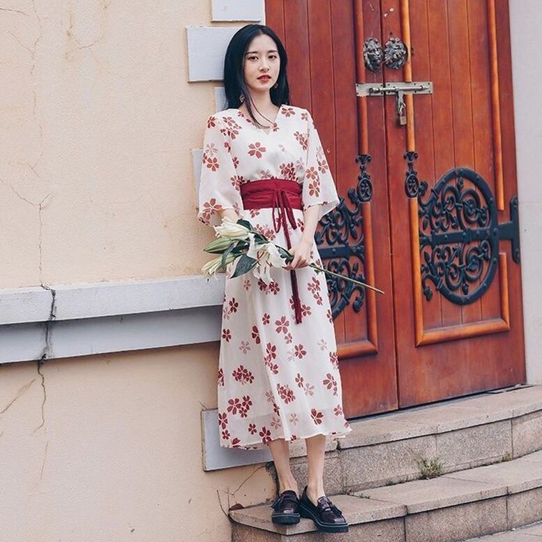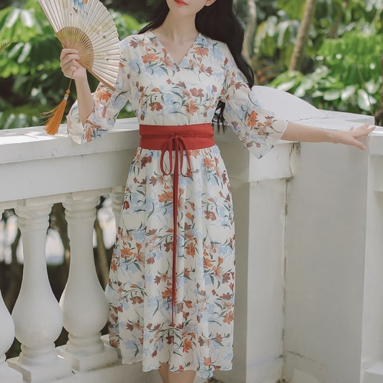 和風ワンピース レディース 送料無料 dress シャツワンピース 花柄カシュクール半袖フレアスリーブ巻きスカートデザイン着物ワンピース Vネック7分袖ワイドスリーブウエストマークオリエンタルプリントドレス ひざ下 ミモレ ロング丈 ウエストマーク ハイウエスト エレガント 大人可愛い きれいめ ナチュラル 華やか 上品 レトロ キュート ガーリー 小花柄 フラワー ボタニカル ボヘミアン 高見え 春夏 秋 大人 おしゃれ デイリー お呼ばれ お出かけ デート 通勤 通学 旅行 パーティー 二次会