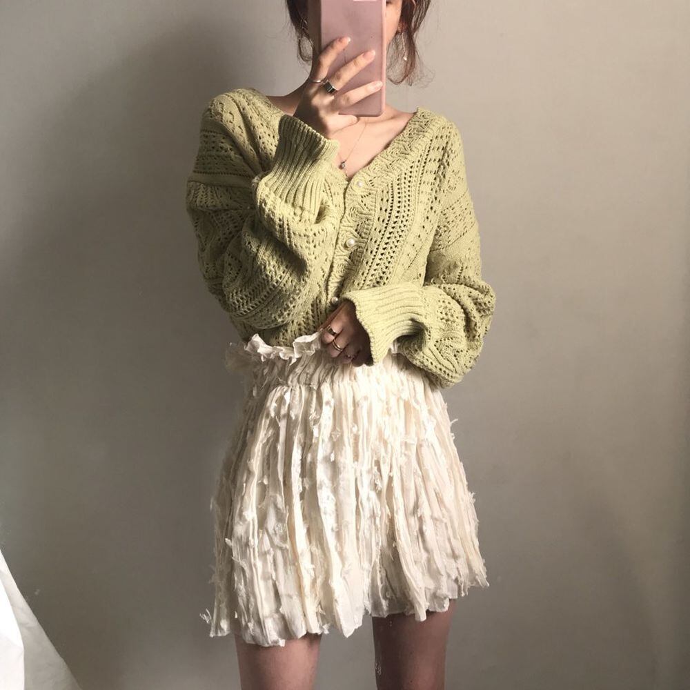 トップス レディース 送料無料 長袖ゆったりカーディガン カラバリ 2色 ベージュ グリーン サイズ4展開 S M L XL ニット ショート丈 長袖 カーディガン ゆったり 可愛いVネック 通勤 オフィス ビジネスシーン 休日 デート お出かけ ランチ ママ友ランチ 公園デビュー カジュアル デイリー 日常 シンプル 通学 学生 10代 20代 30代 40代 幅広い年代 春 秋 冬 着回し 韓国 韓国ファッション オルチャン 楽ちん