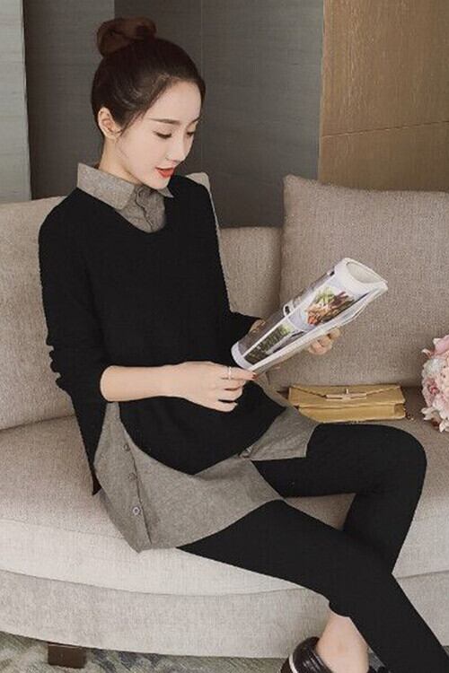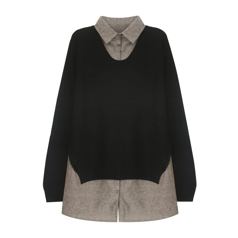トップス レディース 送料無料 重ね着風おしゃれトップス フロントボタン カラバリ1色 ブラック サイズ6展開 M L XL 2XL 3XL 4XL 大きいサイズ サイズ展開豊富 重ね着風 ミドル丈 長袖 セーター トレンド レイヤード 大人 可愛い おしゃれ ハイセンス カジュアル デイリー 日常 シンプル 無地 お出かけ 通勤 通学 学生 オフィス ビジネス 20代 30代 40代 幅広い年代 春 秋 冬 着回し 韓国 韓国ファッション オルチャン Vネックシャツ