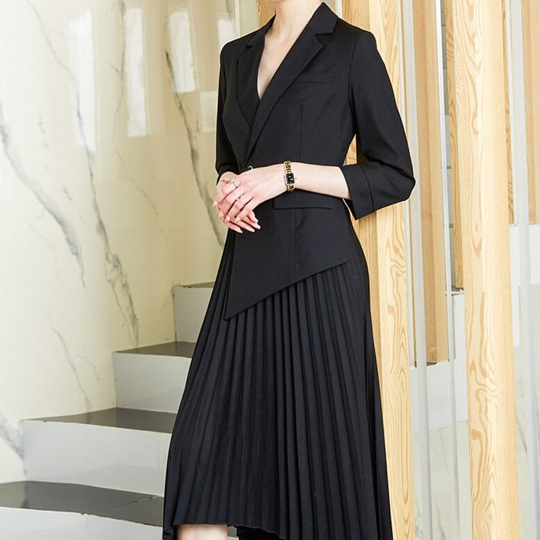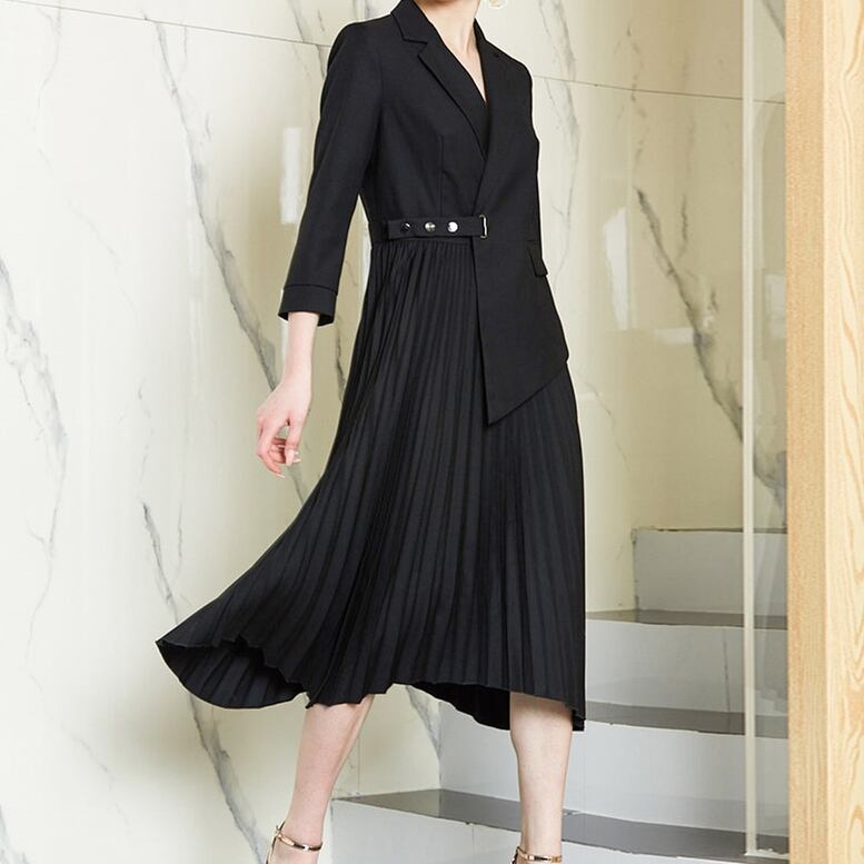 普段使いからオフィスまで使えるプリーツワンピース