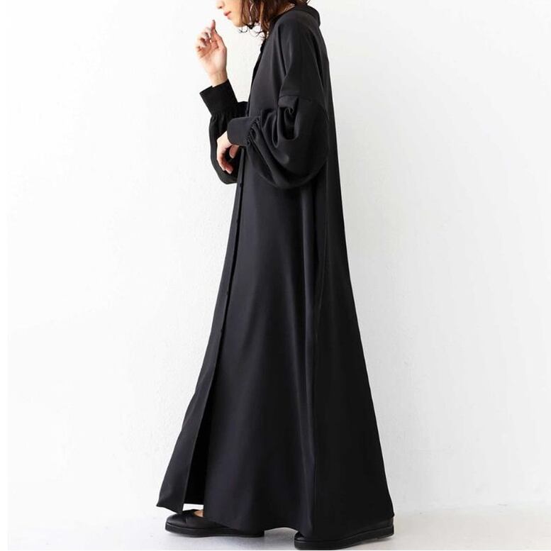 オーバーシルエットが華奢感を演出するマキシワンピース