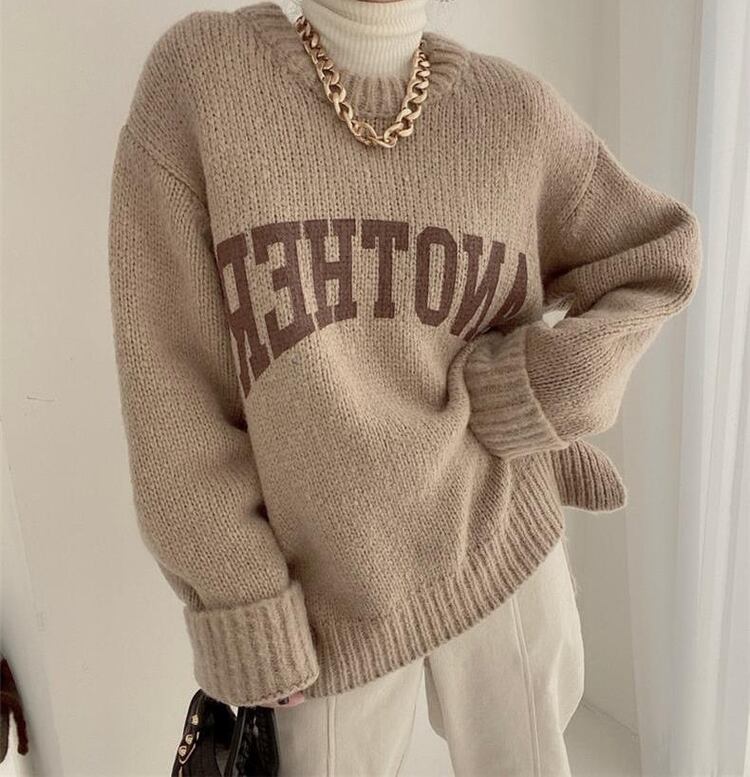 セーター レディース 送料無料 4色 長袖 ニット オーバーサイズ ロゴ ローゲージ もこもこ ボリューム ビッグシルエット トップス カジュアル ルーズ マルチカラ— 楽チン 体型カバー 足長 水色 オレンジ ホワイト ブラック 10代 20代 デート 通学 おしゃかわ アクティブ ゆるかわ 送料無料