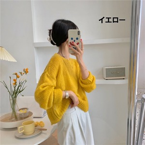 ローゲージ編みのざっくり感が軽やかな印象のふんわりニットです。