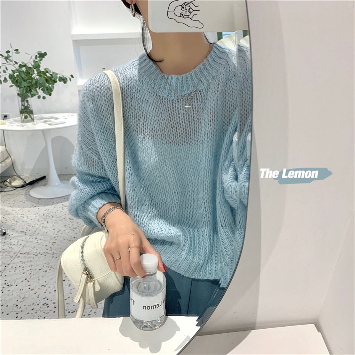 トップス ニット レディース 送料無料 5色 長袖 クルーネック ローゲージ メッシュ 透け感 シアー シースルー オーバーサイズ ビッグシルエット カジュアル ルーズシルエット ペールトーン パステルカラー 楽チン 体型カバー 足長 水色 オレンジ ホワイト ブラック 10代 20代 デート 通学 おしゃかわ アクティブ ゆるかわ 送料無料