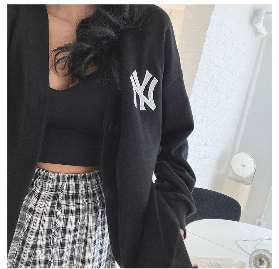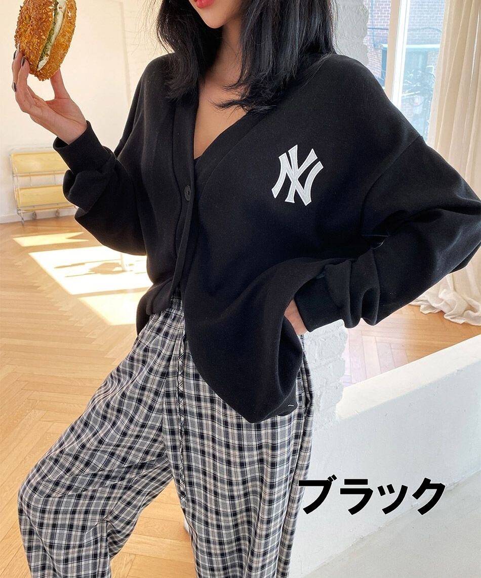 バストのNYロゴと大きめシルエットがマニッシュで可愛いカーディガンです。