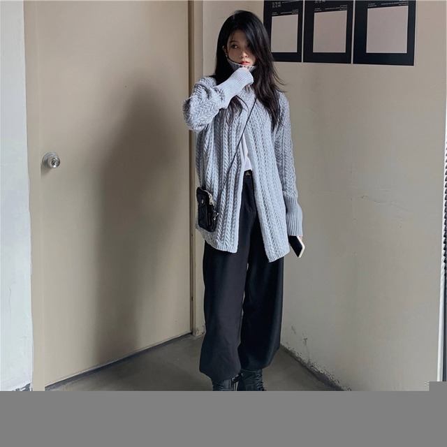 ゆったりしたハイネックで小顔効果を叶え、スリットがレイヤードスタイルにぴったりです。