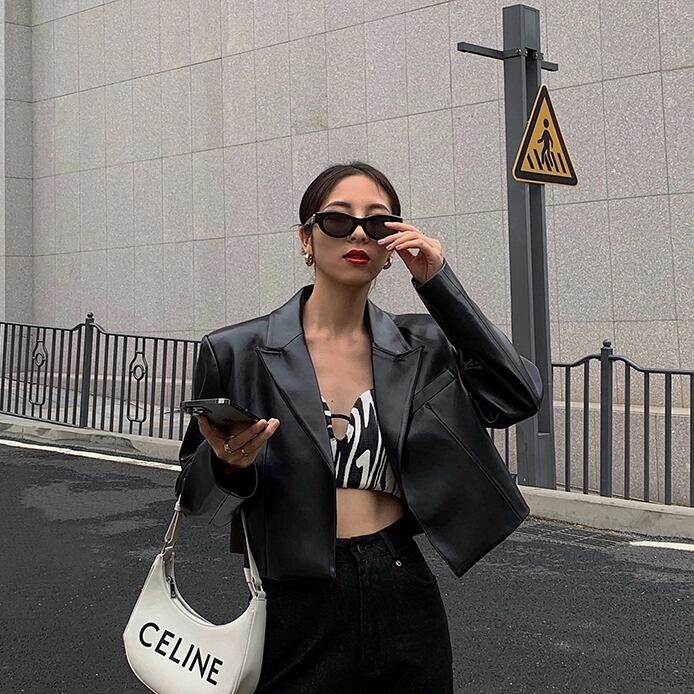 アウター レディース 送料無料 ジャケット 革ジャン ライダースジャケット モーターサイクルジャケット フェイクレザー PUレザー クロップ丈 ショート丈 Aライン 長袖 前開き 襟付き 光沢感 バリモアカラー ウエストマーク ハイウエスト 黒色 ブラック かっこいい カッコイイ 可愛い モード系 クール おしゃれ お洒落 こなれ感 抜け感 個性的 シック モダン メンズライク マニッシュ ボーイッシュ スタイリッシュ 大人女子 春服 秋服 冬服 10代 20代 普段使い 重ね着 着回し デート おでかけ