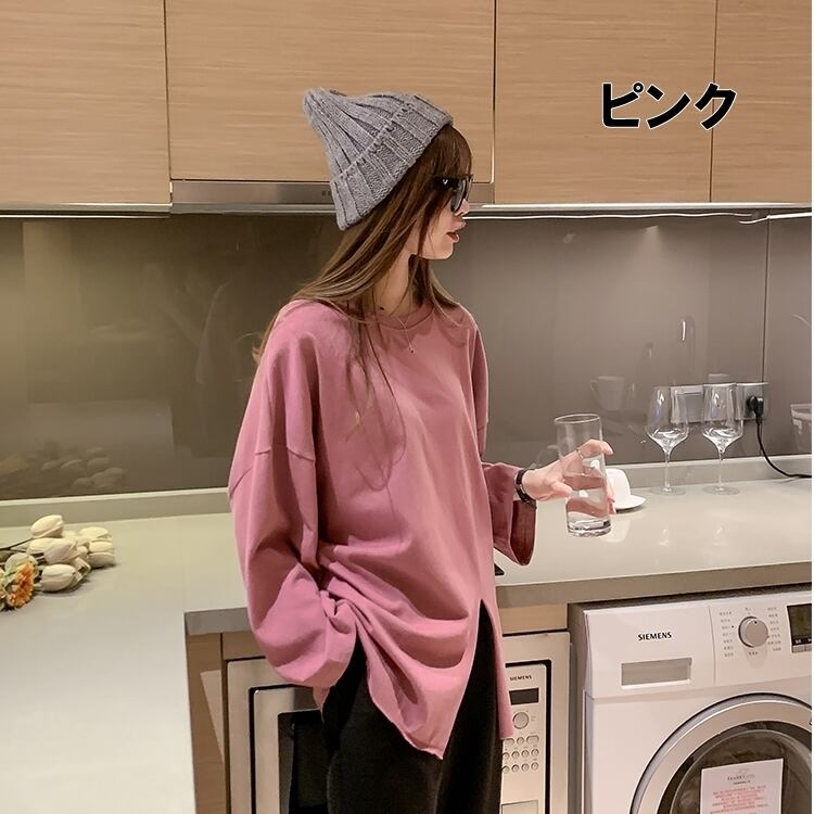 トップス レディース 送料無料 4色 クルーネック スウェット プルオーバー サイドスリット カットオフ 切りっぱなし裾 オーバーサイズ サイズリブ ハイネック 大きいサイズ ゆったり ビックシルエット サイドスリットハイネックニット ハイネックニット リブニット 無地ニット サイドスリットニット ゆったりニット ミディアムニット ニット カジュアル 無地 シンプル 休日 デート ランチ ママ友 20代 30代 秋 冬 あったか 韓国 韓国ファッション オルチャン