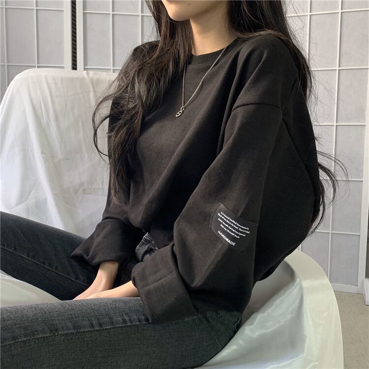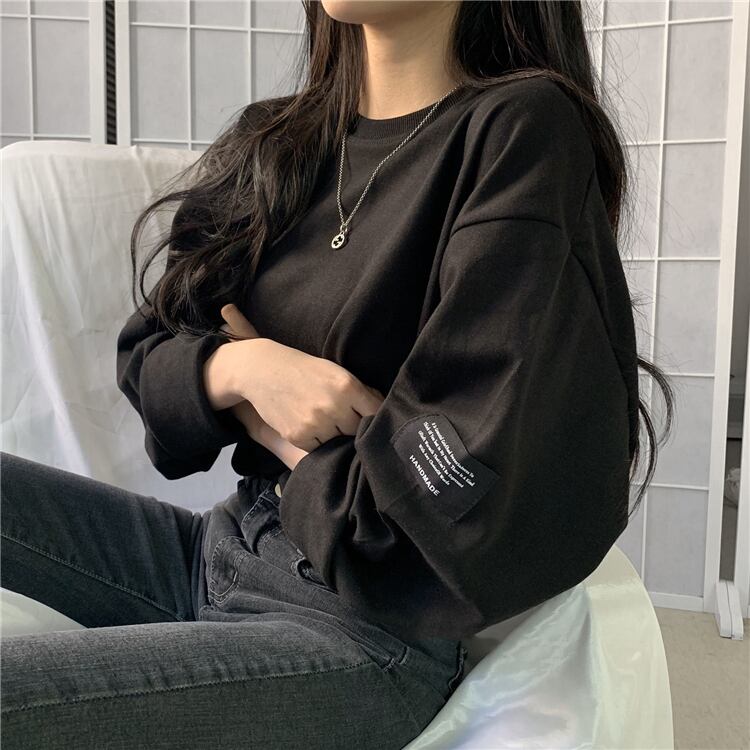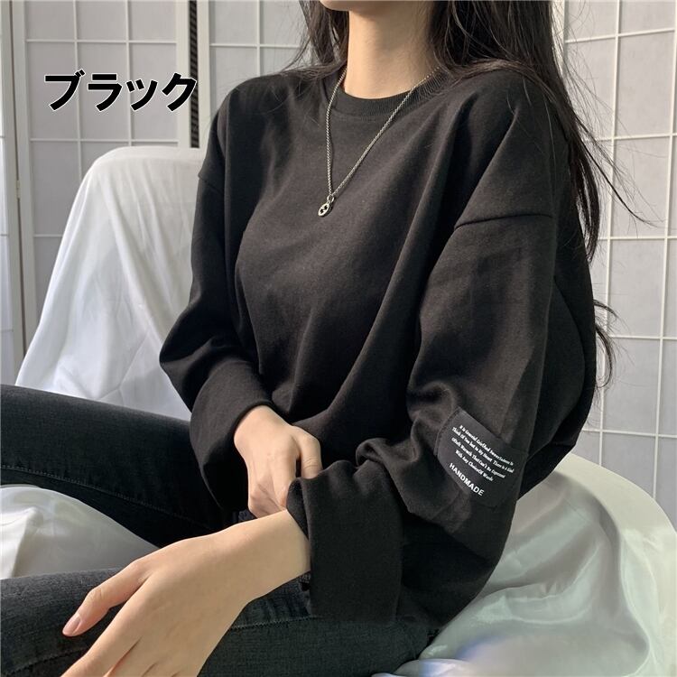 トップス レディース 送料無料 3色 Tシャツ ウィメンス ワッペン シャツ プルオーバー ビッグシルエット クルーネック スウェット パフスリーブ 長袖 単色 ホワイト 白色 ブラック 黒色 カジュアル シンプル 可愛い おしゃれ お洒落 こなれ感 抜け感 爽やか 清潔感 きれいめ ラフ ゆったり ゆる 楽ちん 大きめ ワイド S M L 春服 夏服 10代 20代 30代 40代 おでかけ デート モテ 通学 学生 休日 散歩 着回し 普段使い 韓国 オルチャン ファッション コーデ 新作 2021