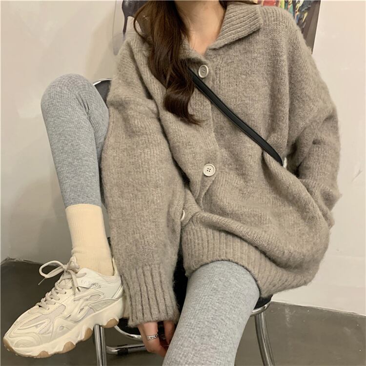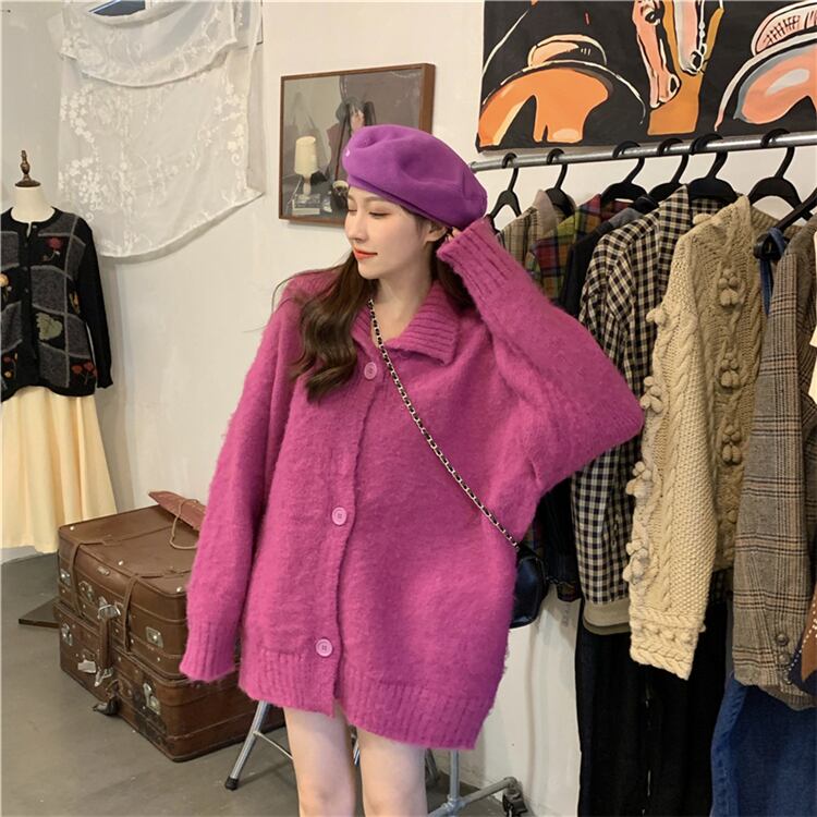 べっ甲ボタンとバイカラー襟がレトロで可愛いカーディガンです。