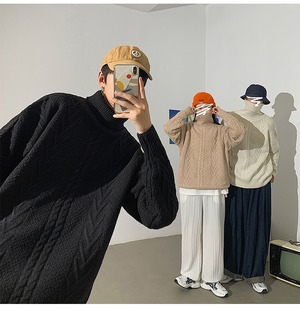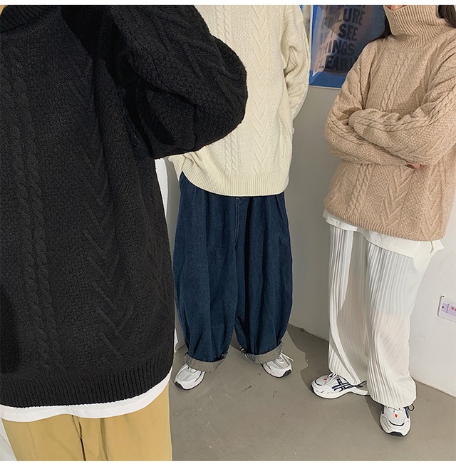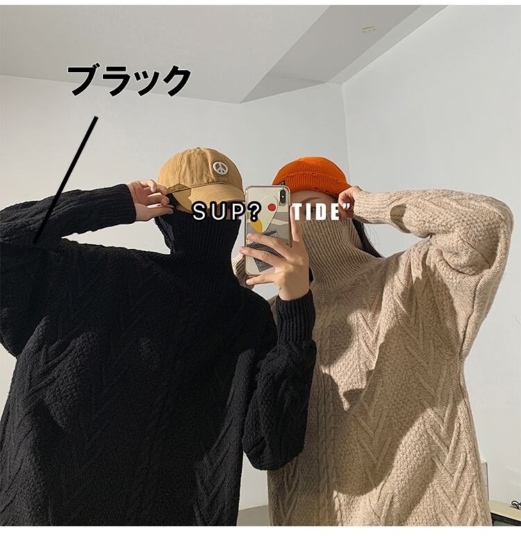 ケーブル編みのタートルネックオーバーサイズニットです。
