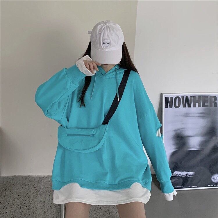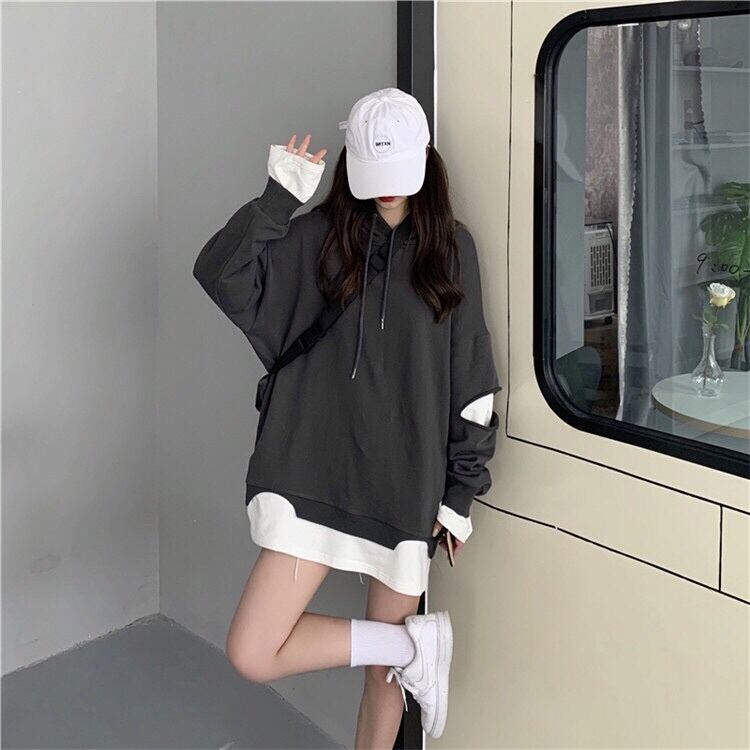 トップス レディース 送料無料 4色展開 パーカー フェイクツーピース アンサンブル フード付き クラッシュ ダメージ 長袖 ワイド オーバーサイズ ビッグサイズ オーバーシルエット ビッグシルエット ゆったり ゆる 大きいサイズ プラスサイズ XL 2XL 3XL 4XL 5XL 羽織 カジュアル ラフ おしゃれ お洒落 カッコイイ かっこいい こなれ感 シンプル マニッシュ ボーイッシュ メンズライク グレー ブラック ブルー 着回し 普段使い 重ね着 お揃い デート おでかけ 10代 20代