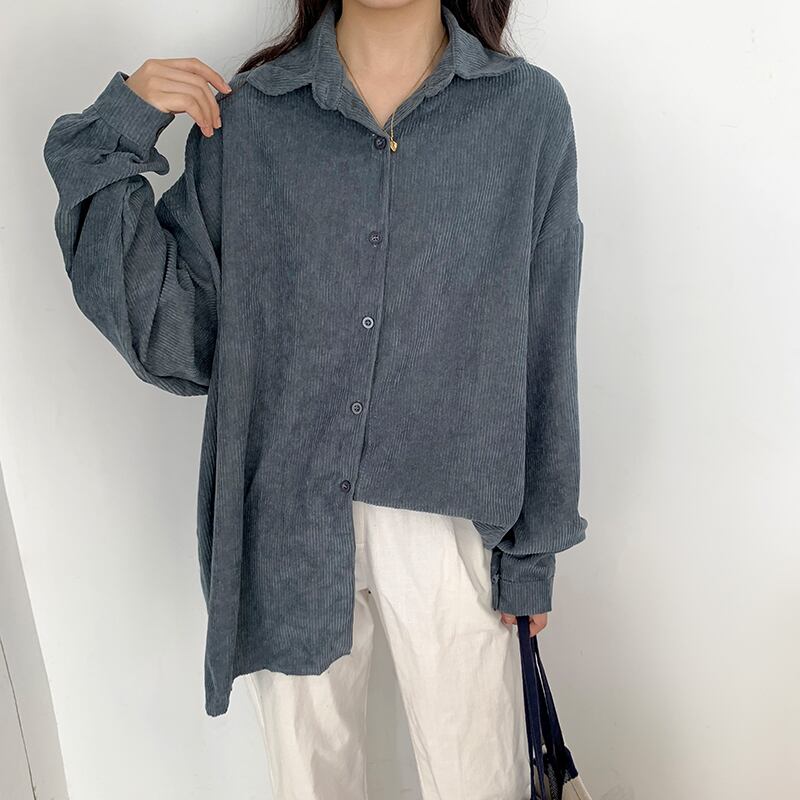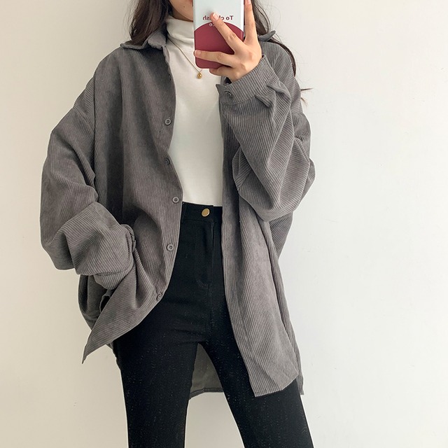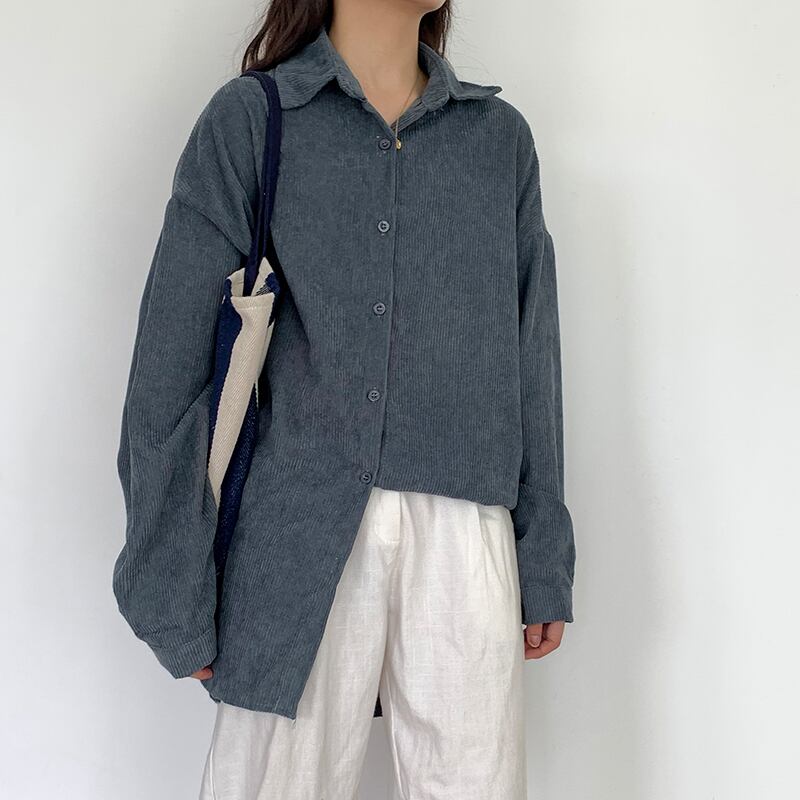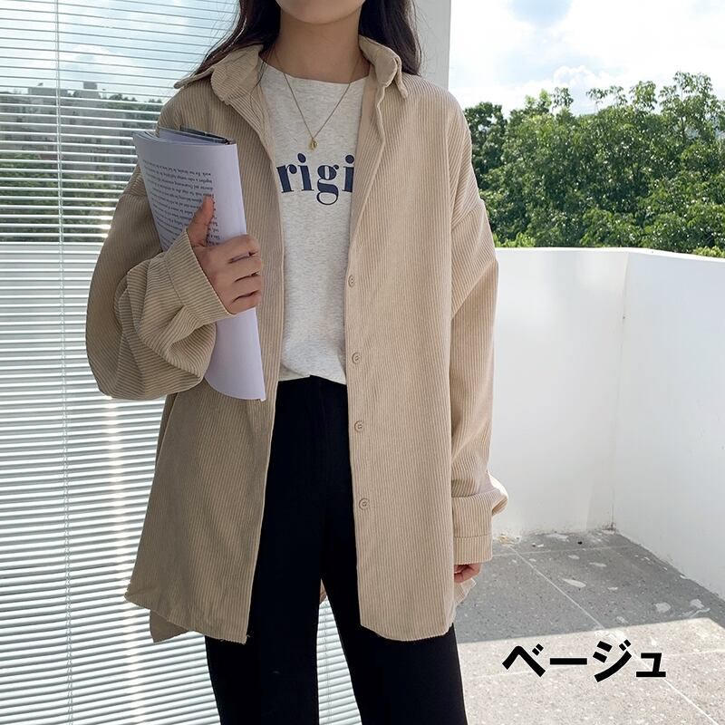 シャツ レディース 送料無料 3色 トップス シャツ ブラウス ポケット付き コーデュロイ アースカラー オーバーサイズ 前開き ベーシック ビッグシルエット 白シャツ 白トップス ロング 長袖 ボリューム袖 ドルマンスリーブ ドロップショルダー Vネック 襟付き オーバーサイズ ビッグシルエット バックスリット バックシャン バックコンシャス 大人可愛い きれいめ 上品 レトロ 大人女子 こなれ感 ラフ 白 ホワイト ストライプ 重ね着 楽ちん 体型カバー 高見え 定番