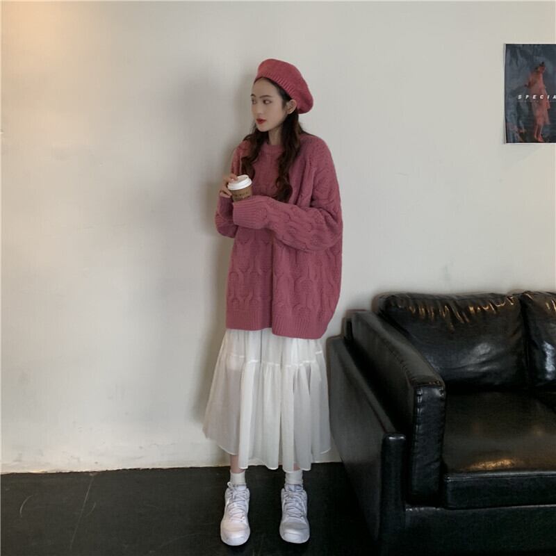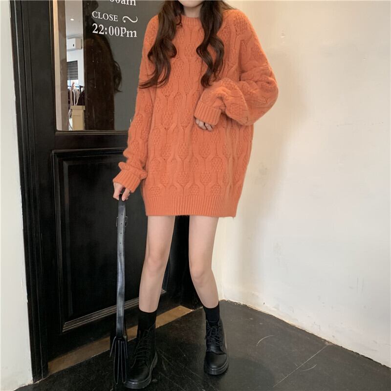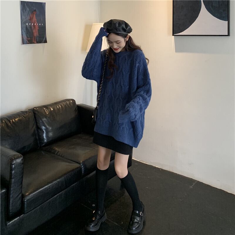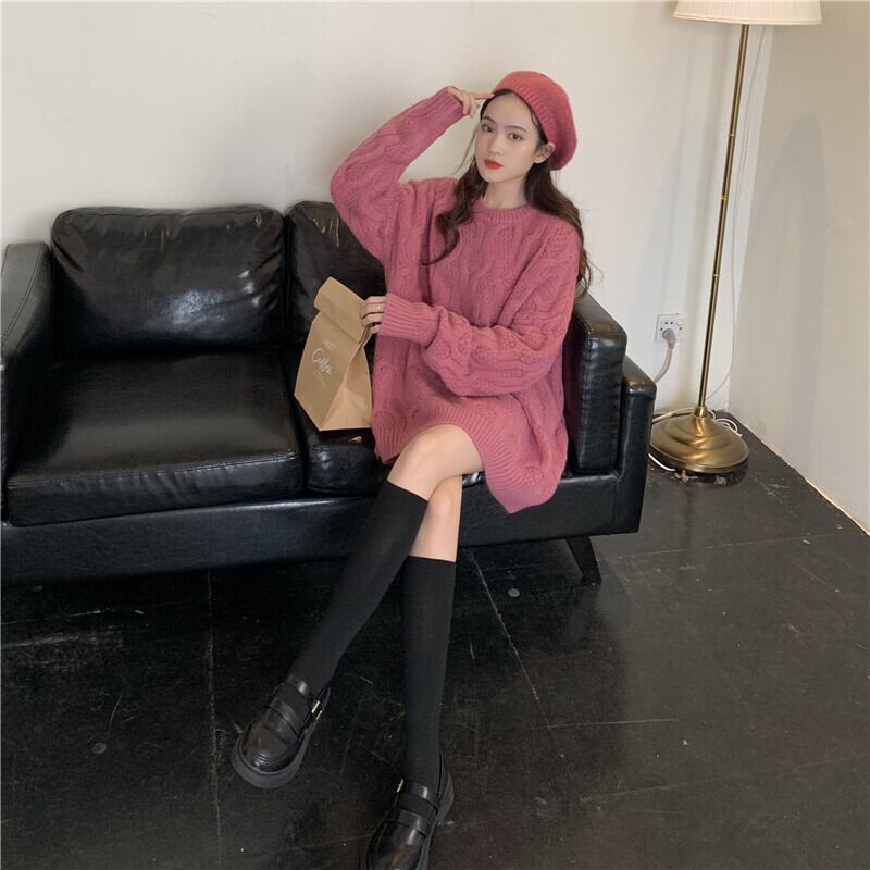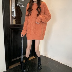 ワンピース風のオーバーサイズが可愛いケーブルニットです。