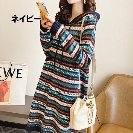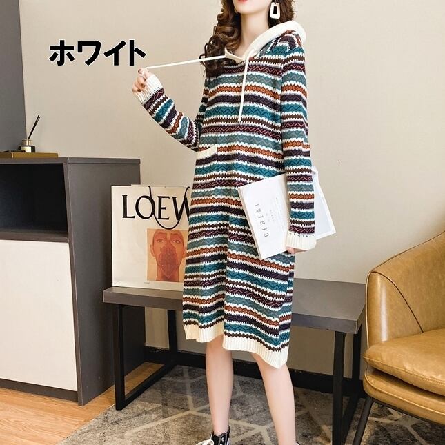 ワンピース レディース 送料無料 2色 ミディアムワンピース リブ ニット フード付き ボーダー 長袖 二の腕カバー ゆったり 大きめ オーバーサイズ ビッグサイズ 大きいサイズ フリーサイズ ゆる マタニティ 楽ちん スリット サイドスリット カジュアル ラフ 体系カバー 着痩せ 無地 レトロ 婦人服 10代 20代 30代 40代 50代 ボックスシルエット Iライン 大人 重ね着 着回し 春服 春 夏服 夏 シンプル お洒落 おしゃれ アジアン エスニック ファッション コーデ スタイル 休日