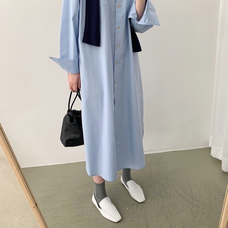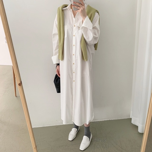 ゆったりシルエットが可愛いシャツワンピースです。