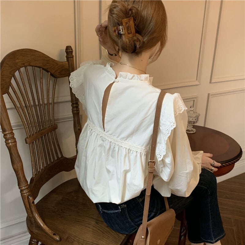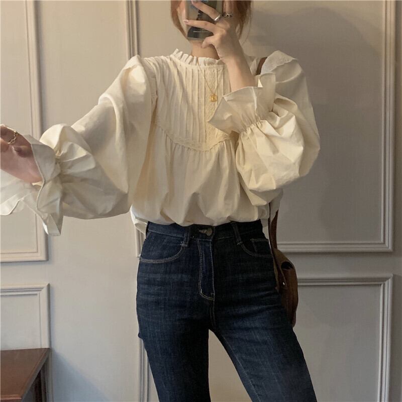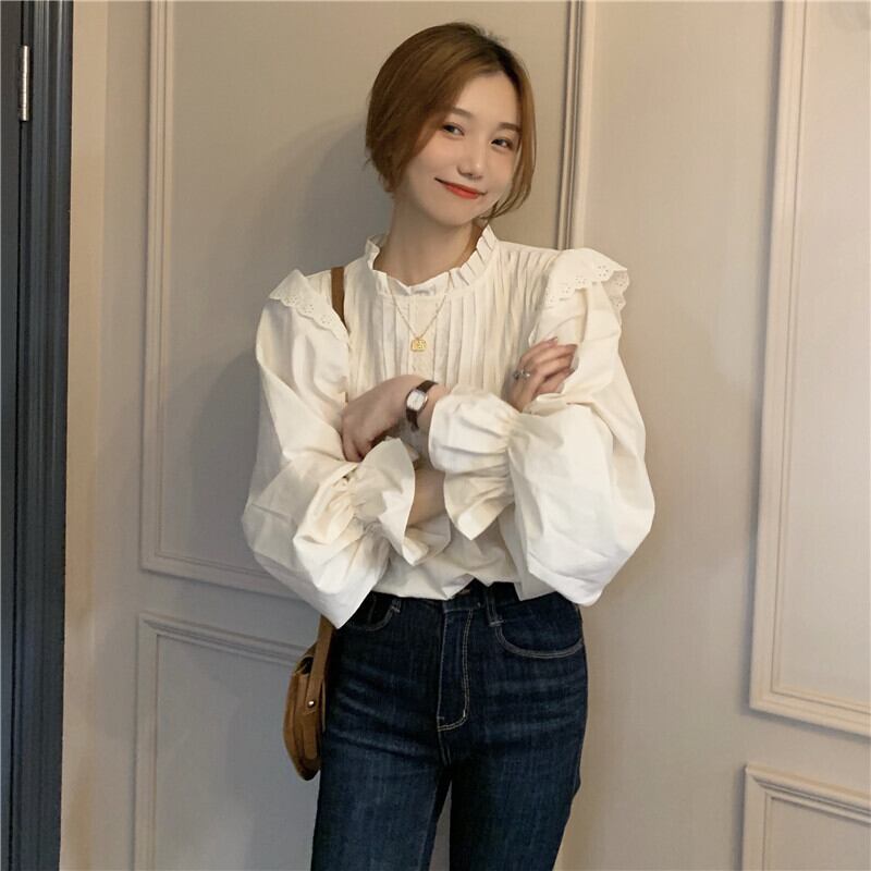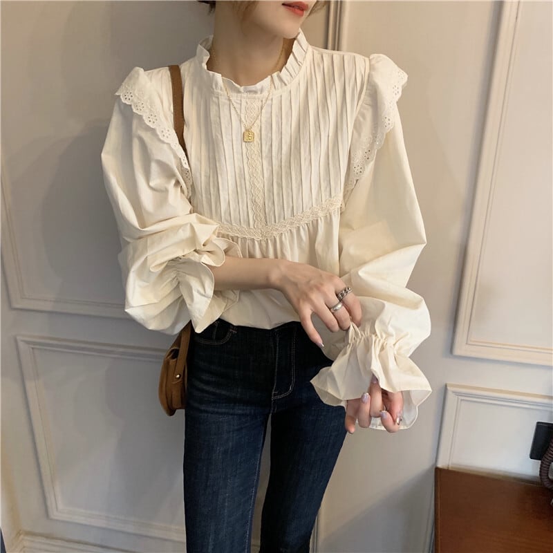トップス レディース 送料無料 シャツ ブラウス ドレスシャツ ギャザー ピンタック キャンディスリーブ ビッグカラ— レース 襟コンシャス 立ち襟 スタンドカラー 長袖 ロングスリーブ ボリューム袖 バルーンスリーブ パフスリーブ 可愛い かわいい きれいめ カジュアル ガーリー キュート 上品 こなれ感 抜け感 透け感 シースルー おしゃれ お洒落 春 夏 春服 夏服 10代 20代 デート 女子会 モテ おでかけ 着回し 普段使い 韓国系 韓国 オルチャン S M L 二の腕カバー