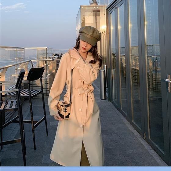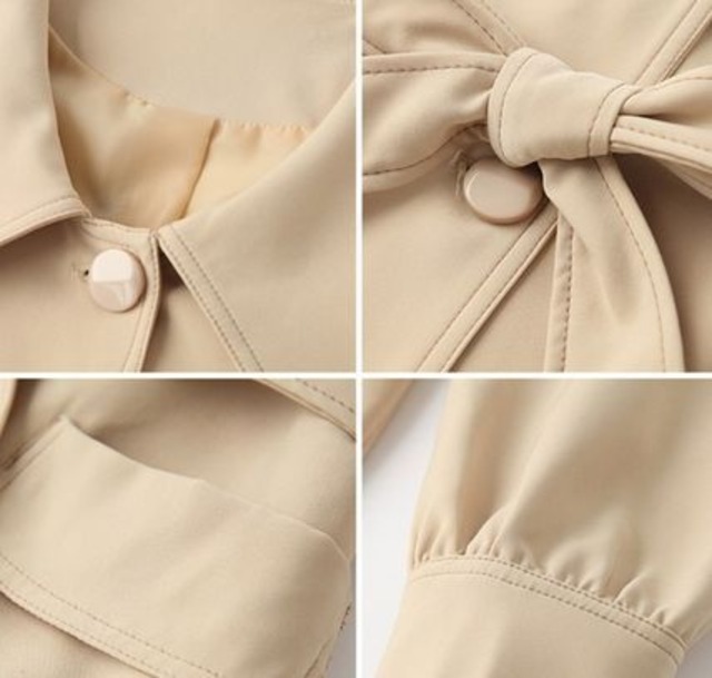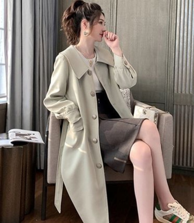 トレンドをおさえたビッグカラ―が可愛いトレンチ風ミディアムコート。