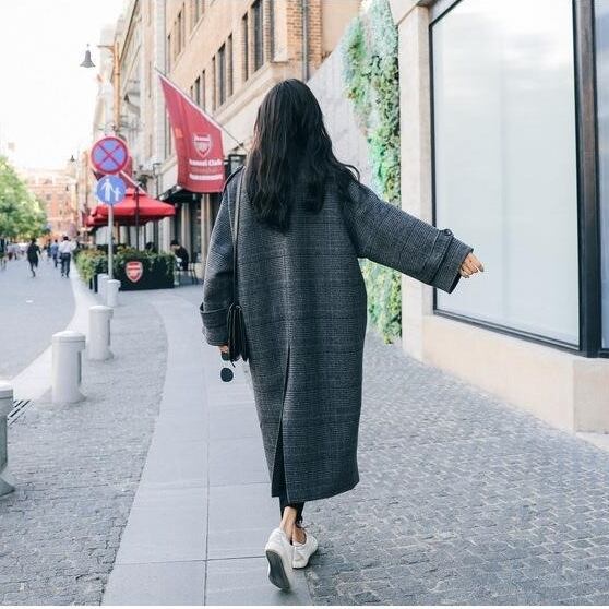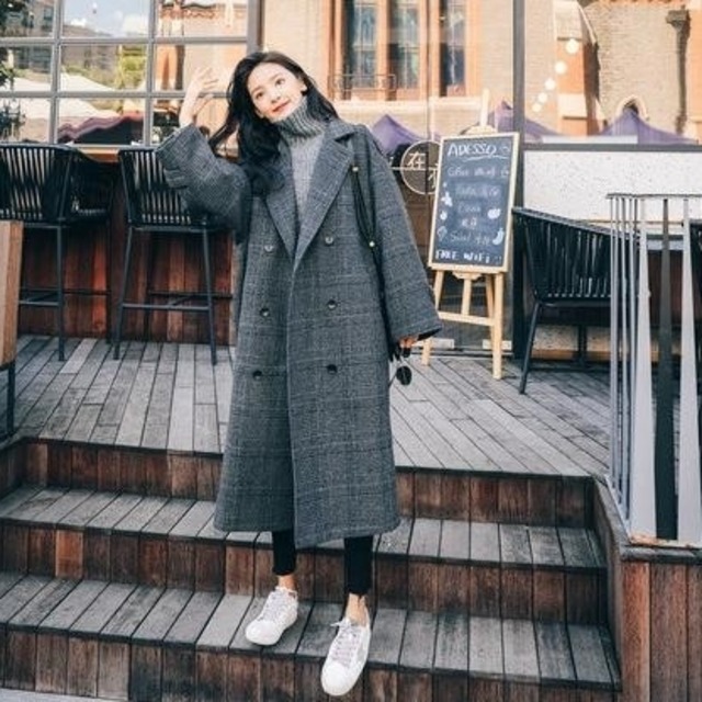 シックなグレンチェックとボリューム感がメンズライクで可愛いロングコートです。