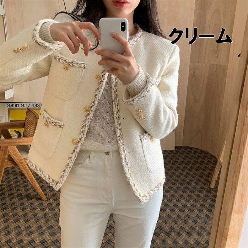 トップス レディース 送料無料 3色 ノーカラージャケット 長袖ジャケット ツイードジャケット キルティング裏地 おしゃれ スタイル 小顔見せ 着痩せ 体形カバー インスタ トレンド きれいめ かわいい キュート レトロ クラシカル グリーン 女子会 お出かけ パーティー ママ 参観日 謝恩会 パーティー フォーマル お呼ばれ オフィス 通勤 OL エレガント フェミニン キュート ガーリー ロマンチック ツイード パステルカラー 大人かわいい ミディアム丈 ジャケット 襟なし 長袖 S M L