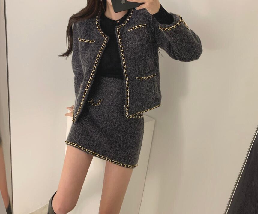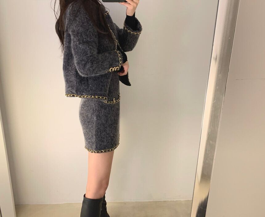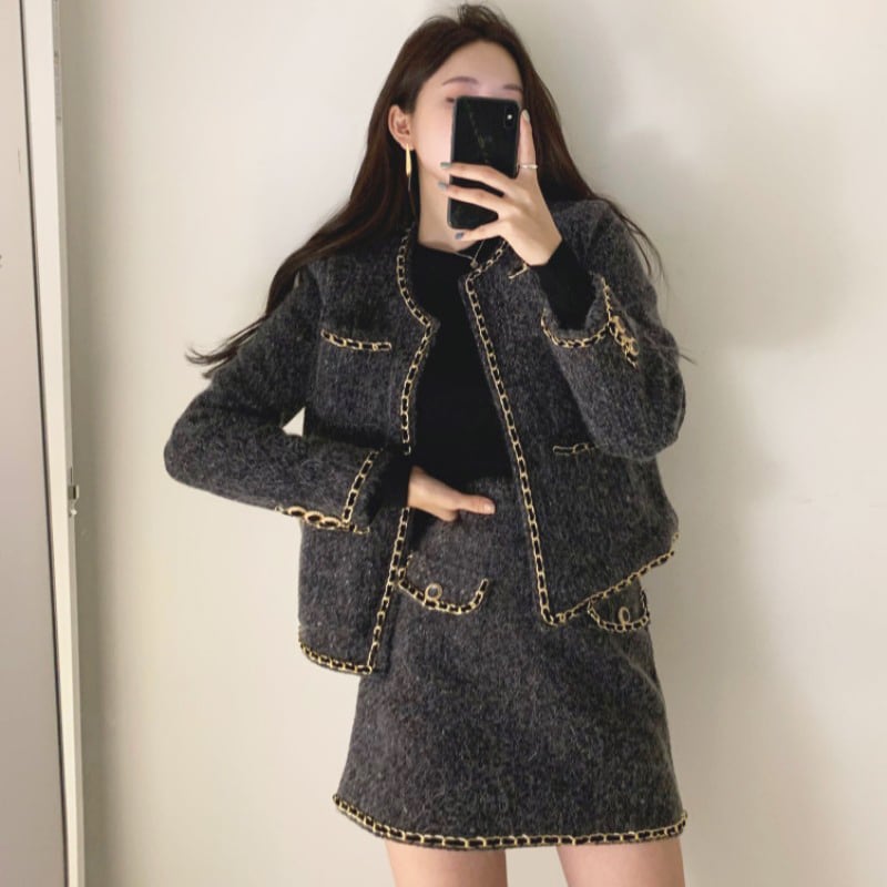 セットアップ レディース 送料無料 2色 ジャケット ノーカラーコート チェーン ミニスカート ハイウエスト ミディアム丈 ショート丈 バイカラー プルオーバー トレンド かわいい きれいめ おしゃれ ツイード 萌え袖 女子会 デート お出かけ イベント 長袖 Vネック 小顔見せ 着痩せ ドロップショルダー ゆったり ハイウエスト 美脚 ざっくり こなれ感 ボリューム タイト モテ インスタ カーキ ブラック オフホワイト 10代 20代 セクシー スタイル 韓国 コーディネート 模様編み