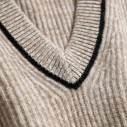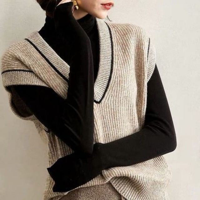 大きめのVネックで抜け感たっぷりなライン入りニットベスト。