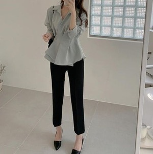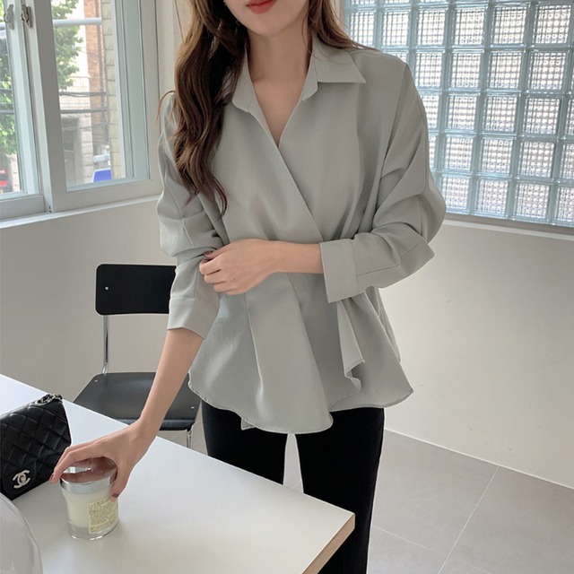 キモノトップス風のモダンなカシュクールペプラムトップス。