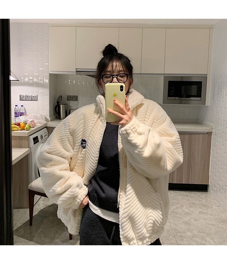 ボアブルゾン ジャケット レディース 送料無料 アウター コート リブ ライン ワッペン キルティング裏地 ブルゾン ジャケット ムートン もこもこ コートスタンドカラー エコファーボリューム袖ジャケット ミディアム丈 襟付き オーバーサイズ ビッグシルエット 大人可愛い きれいめ 上品 レトロ 大人女子 こなれ感 キュート ガーリー ゆったり 白 ホワイト 重ね着 体型カバー モテ 高見え 格上げ インスタ映え 春 秋冬 大人 かわいい おしゃれ 普段使い デイリー お出かけ デート 通勤 通学