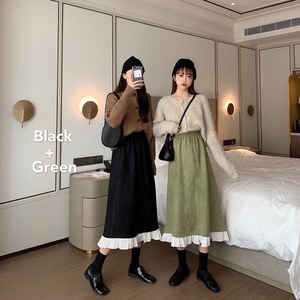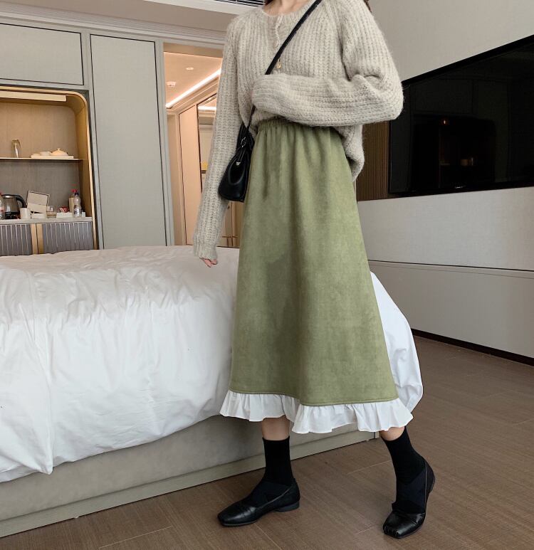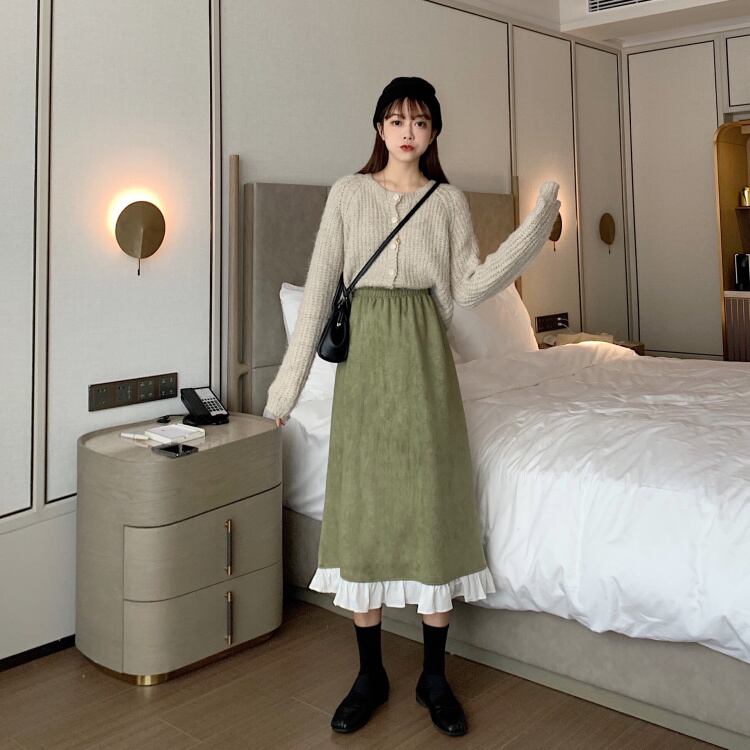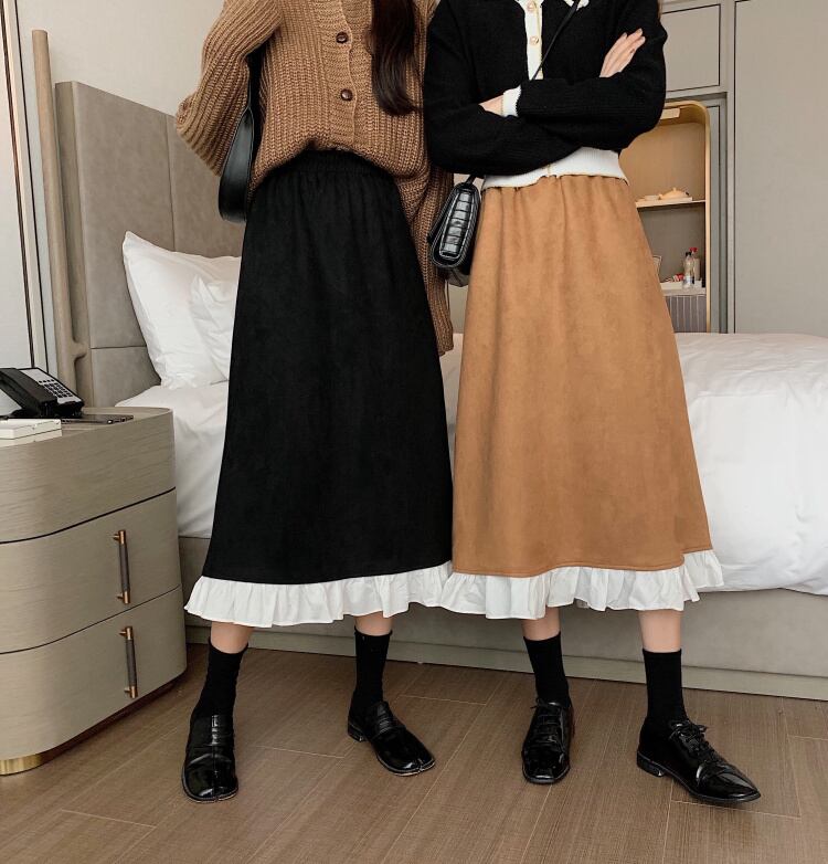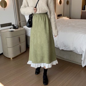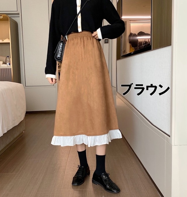 スエードチックな滑らかな質感のミモレ丈スカートです。