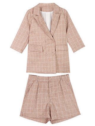 ジャケットセットアップ レディース 送料無料 2色 スーツセット セットアップ チェック 上下セット 2点セット ツーピース スーツ ビッグジャケット+ショートパンツセット オーバーサイズテーラードジャケット ジャケット ショートパンツ 半袖 5分袖 ワイド オーバーサイズ ビッグシルエット 大人可愛い きれいめ 上品 大人女子 こなれ感 マニッシュ キュート ガーリー エレガント ゆったり ニュアンスカラー 重ね着 美脚 脚長 高見え 春夏 秋 大人 デイリー お呼ばれ お出かけ