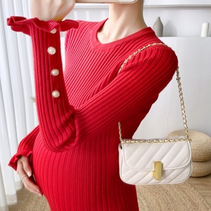 ワンピース レディース 送料無料 3色 マタニティ 妊婦 ロングワンピース クルーネック パールボタン リブ ニット フレア 長袖 ゆったり 大きめ オーバーサイズ ビッグサイズ 大きいサイズ フリーサイズ ゆる 楽ちん スリット サイドスリット カジュアル ラフ 体系カバー 着痩せ 無地 レトロ 婦人服 10代 20代 30代 40代 50代 ボックスシルエット Iライン 大人 重ね着 着回し 春服 春 夏服 夏 シンプル お洒落 おしゃれ アジアン エスニック ファッション コーデ スタイル 休日