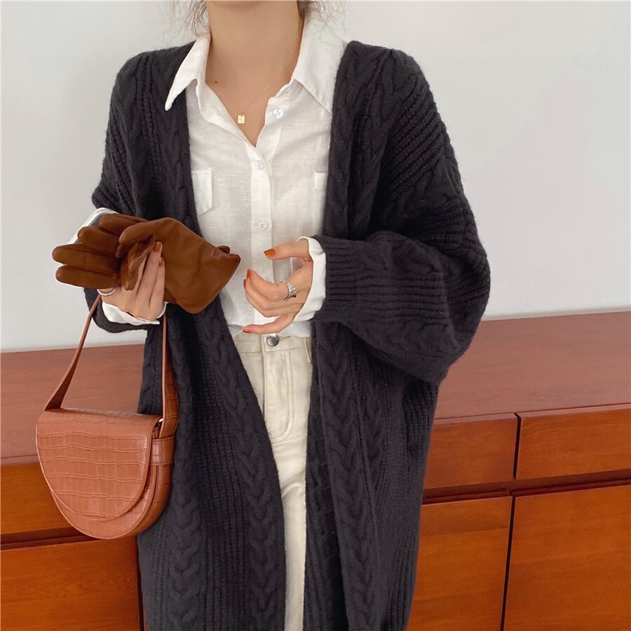 カーディガン ニット 送料無料 2色 レディース Vネック ミモレ丈 ミディアム丈 ノーカラーケーブルニット ダイヤ ロングスリーブ 大人可愛い 大人女子 エレガント 大人 学生 韓国系 お出かけ 外出カジュアル 着回し ファッション デート コーディネート 重ね着 休日 特別な日 お祝い 記念日 メンズウケ カジュアル 普段着 春コーデ 秋コーデ 韓国 おしゃれ シンプル スタイル ゆったり 細見せ 韓国ファッション 長袖 オフィスカジュアル 30代 オフィス ワンポイント ママ ママコーデ
