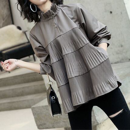繊細なプリーツ入り生地のティアード裾が可愛いブラウス。