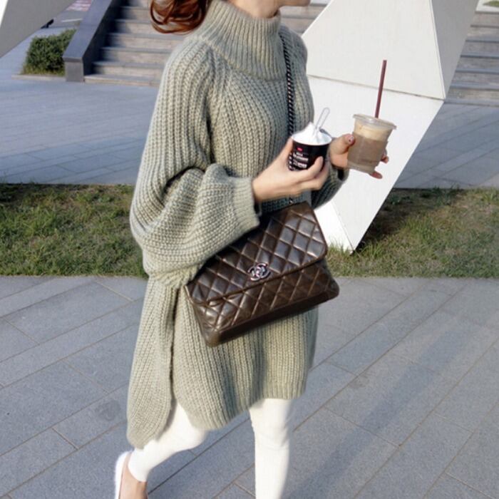 オーバーサイズが抜け感たっぷりケーブル編みのハイネックニットワンピースです。