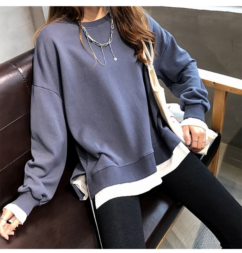 トップス レディース 送料無料 4色 スウェット プルオーバーフェイクレイヤード レイヤード風 スリット オーバーサイズ クルーネック 大きいサイズ ゆったり ビックシルエット サイドスリットハイネックニット ハイネックニット リブニット 無地ニット サイドスリットニット ゆったりニット ミディアムニット ニット カジュアル 無地 シンプル 休日 デート ランチ ママ友 20代 30代 秋 冬 あったか 韓国 韓国ファッション オルチャン