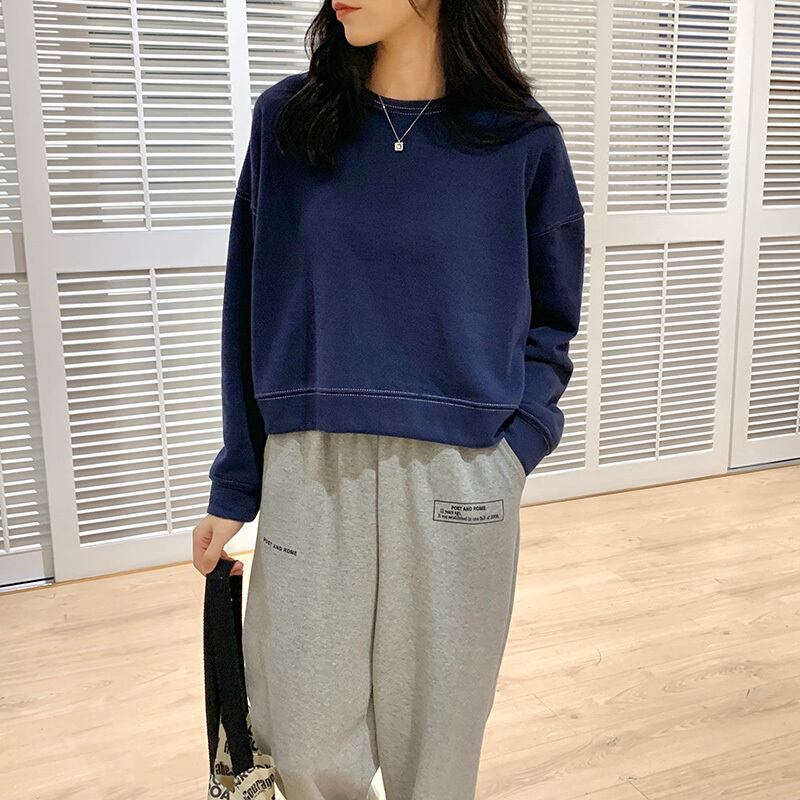 クロップ丈とシンプルな無地を活かしたスウェットです。