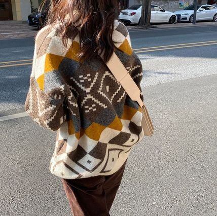 スウェット レディース 送料無料 長袖 2色 アーガイル ニット オーバーサイズ ロゴ マルチパターン 幾何学 北欧 エスニック クルーネック カジュアル ルーズ マルチカラ— 楽チン 体型カバー 足長 水色 オレンジ ホワイト ブラック 10代 20代 デート 通学 おしゃかわ アクティブ ゆるかわ 送料無料
